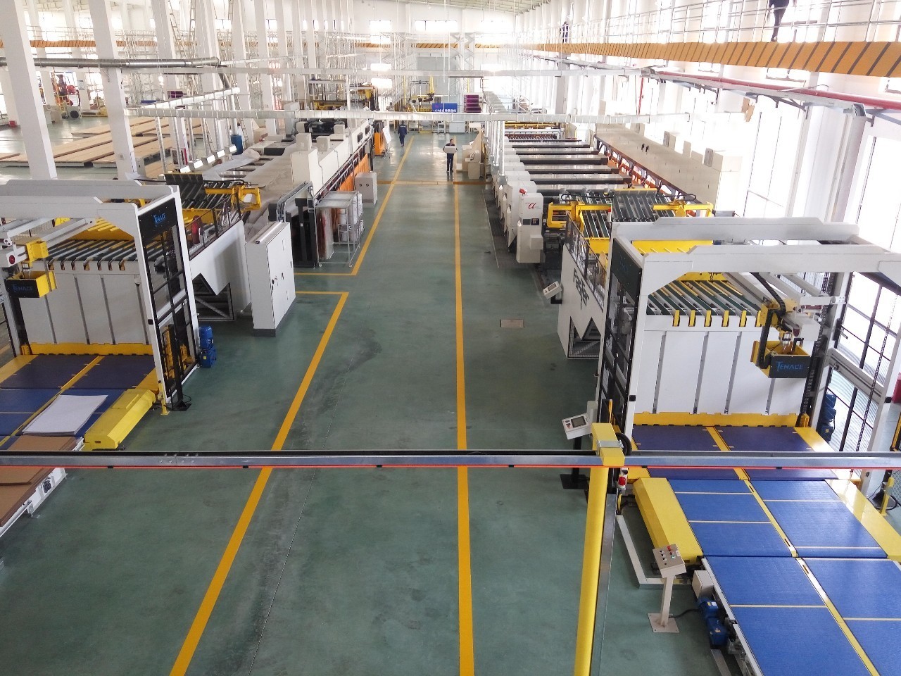 徐龙平认为,龙利得客户结构的特点也是他考虑建立智能工厂的因素之一。龙利得的客户有不少都是世界五百强企业,目前已有近17家来自美国、欧洲等地的大用户前来接洽招标。智能高效的设备能够满足这些客户大批量、个性化的订单。他为我们举了这样一个例子:一家国内知名的大型企业,他们在纸箱厂的选择上要求非常高,他们需要的纸箱不仅要牢固性强,而且要交货及时,比如说当天晚上来单,第二天早上六点就要将产品送走。龙利得完全能满足其要求,因此顺利轻松地接下了该客户的订单。龙利得有好的研发团队,生产出来的纸箱抗潮抗压性能好,在同等的重量下,纸板强度可以高于别的的纸板,这样的产品可以为客户节约更多的成本。另外,智能高效的设备能够确保在短时间内完成大批量的产品。徐龙平介绍说,智能化工厂生产出来的产品不会出现质量不稳定,数量难以控制的情况。生产线的平均速度基本可以控制在每45秒产出一个托盘。如此惊人的生产效率着实让我们为之惊叹。他还提到,由于龙利得做的产品有相当一部分用于食品包装,因此对于车间的环境要求非常高。智能工厂的两条设备在生产过程中基本可以做到没有纸屑,使整个车间保持干净整洁,这也是产品受到客户青睐的原因之一。