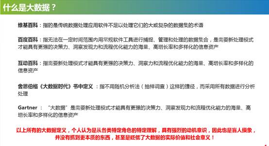 每个人对于大数据有自己的理解,笔者就博览众长吧。