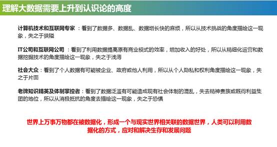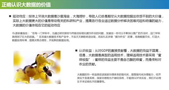 我很喜欢李国杰院士的关于大数据的评价,就是希望大家多点耐心,少点急功近利的想法,大数据更强调驱动效应,虽然有为大数据变现窘境开脱的嫌疑哈。