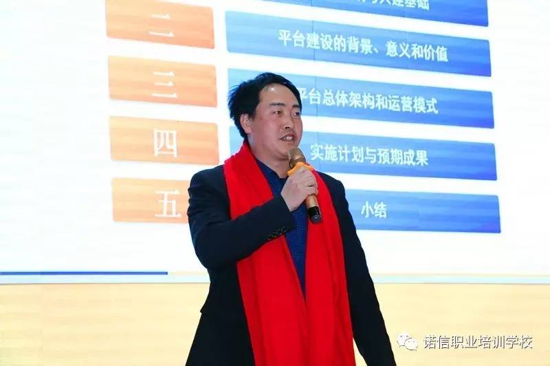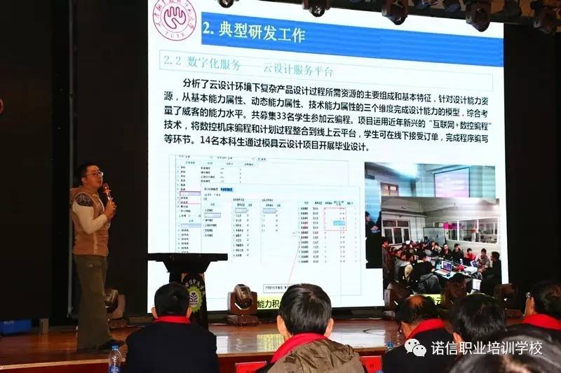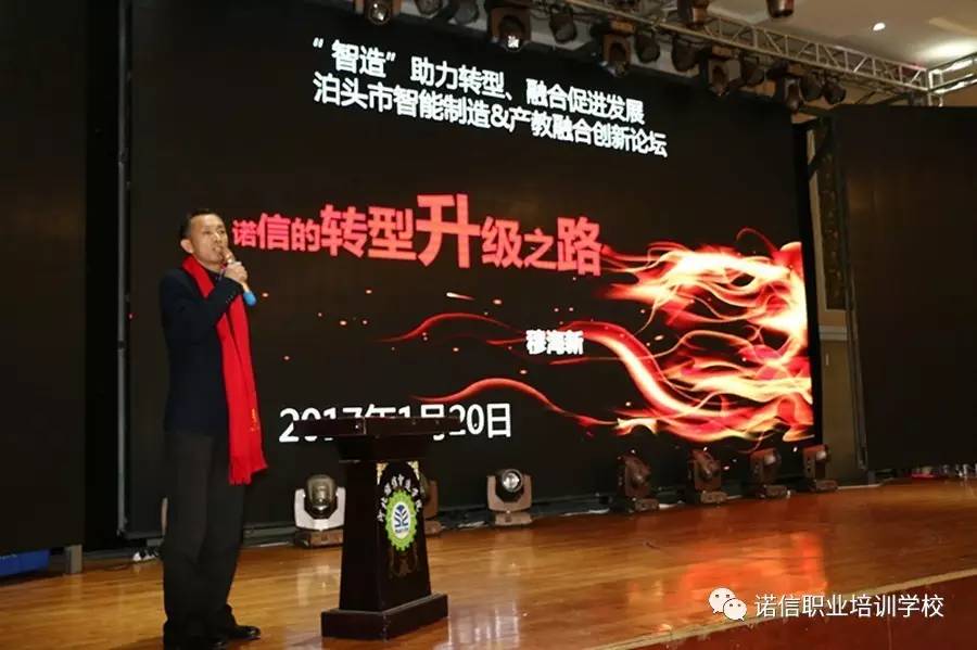 诺信职业学校穆海新校长做了关于2016年《诺信转型升级之路》的汇告,诺信职校从传统模具设计与制造培训专业升级,向工业设计,3D打印,智能装备的转型过程与未来布局。