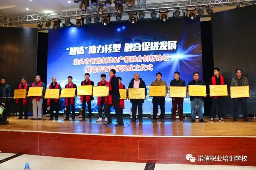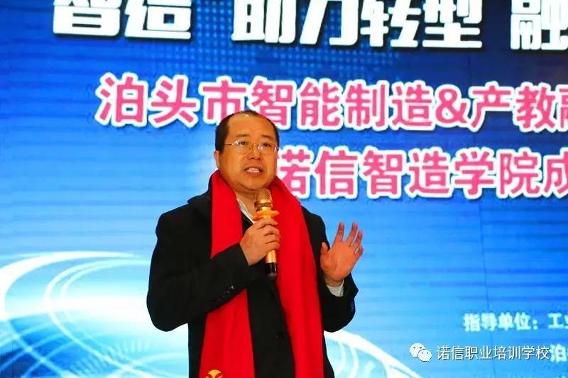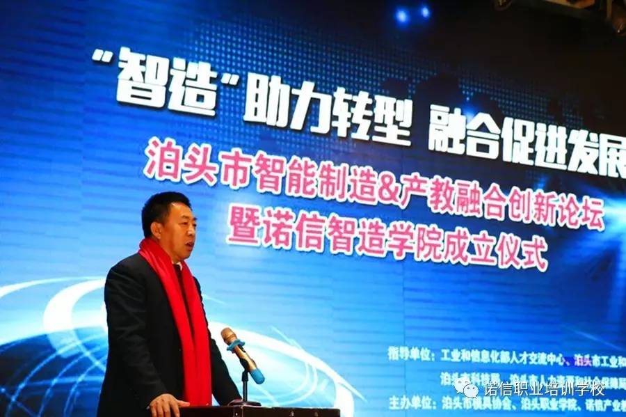 当前,我国正在大力推进中国制造2025战略规划,智能制造作为中国制造2025的主攻方向,推动制造业的转型升级的关键路径。国家2016年12月刚刚发布了《智能制造发展十三五规划》,把智能制造提升到战略高度。结合泊头制造业发展现状,为提升泊头制造业人才竞争优势,探索智能制造转型之路的校企合作模式,河北诺信产业教育集团承办“泊头市智能制造&产教融合创新论坛暨诺信智造学院成立仪式”,1月20日下午成功圆满结束。