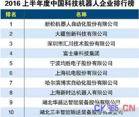 2016上半年中国机器人科技公司排行榜