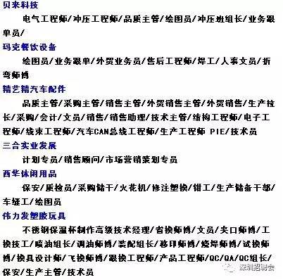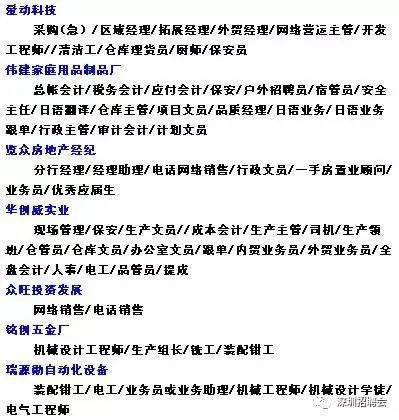 外贸业务员/销售助理/销售跟单/国内销售经理/PE工程师/结构工程师/高级销售跟单/生产主管(移动电源)/品质主管/生产组长/PMC/蓝牙维修员/计划跟单员/仓管员/SMT品质组长/车间拉长