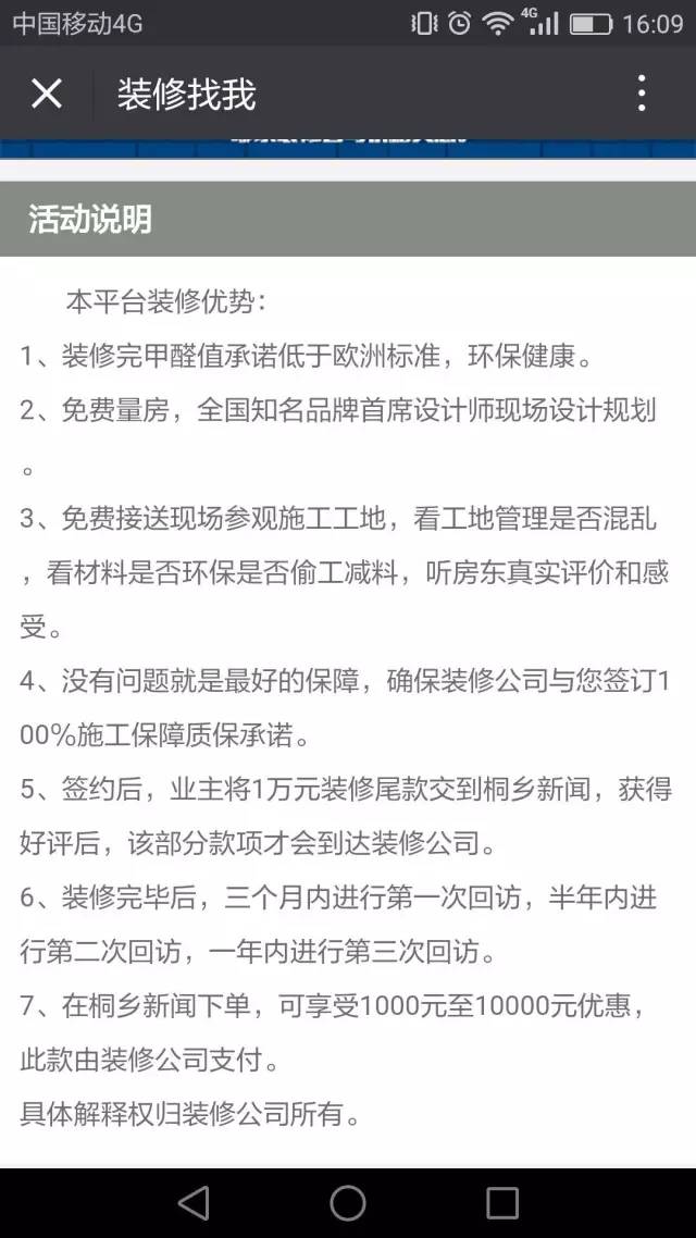 那么,“装修找我”便民平台具体有哪些优势呢?我们对装修公司提出这样的要求:装修完甲醛值低于欧洲标准,环保健康;免费量房,全国知名品牌首席设计师现场设计规划;免费接送现场参观施工工地,看工地管理是否混乱,看材料是否环保是否偷工减料,听房东真实评价和感受;没有问题就是最好的保障,让装修公司与您签订100%施工保障质保承诺。