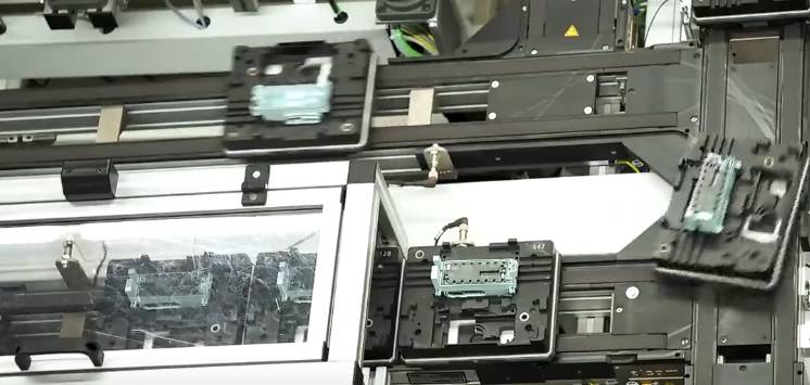 其产品线,最快可以每小时镶嵌25万个元器件(比如电阻、电容和微芯片)。一旦焊接过程完成,电路板将被传送到一个光学检验系统中进行质量检测,包括检测元器件的焊接位置是否正确,以及焊接点质量,现场发现并剔除不合格的产品。