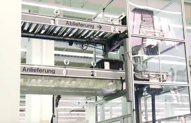 EWA内部的原料配送也实现了自动化和信息化。物料被放置在地下仓库里,当生产线上需要某种物料时,监控显示器上会提示,工人只要拿着扫描枪在样品上扫码,条码信息就会被传送到自动化仓库去,然后由ERP系统发出指令,让场内的自动化物流系统到仓库的指定位置取物料,然后经过总长达到指定位5公里的地下运输带送到置,由自动升降机送到生产线附近。