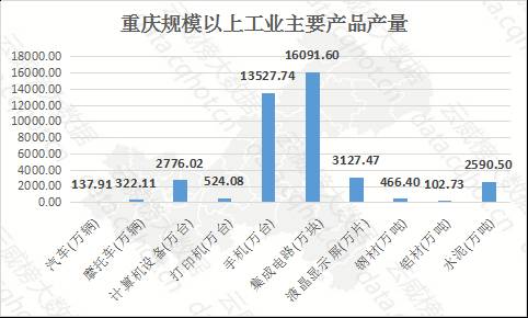 分产品看,1-5月,重庆规模以上工业主要产品中汽车、摩托车、计算机设备、打印机、手机、液晶显示屏产量增长迅速;能源产品中钢材、水泥产量均在下降;但铝材产量同比增长23.1%。