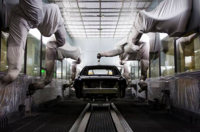 涂装工艺环节要给车身穿上持久靓丽的“外衣”。传祺二线涂装车间PT(涂装前处理工序)/ED(电泳工序)及喷涂工段自动化率达到100%。涂装工艺采用双摆杆/高泳透力电泳线、“B1B2”水性免中涂喷涂工艺、全自动机器人喷漆及循环风再利用技术等技术,喷涂质量高而且将“绿色”贯穿全程。