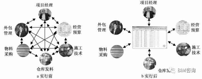 建造阶段承包商进行精细化项目管理,最大困难在于:①缺乏有效的工具和方法为各条线提供实时工程基础数据,如项目经理经营决策、人机物资源计划、仓库限额领料、物料采购各个环节往往因预算部门不能及时提供基础数据,很难做到事前控制;②缺乏有效的工具和方法为各条线提供最有效率的协同作业方法,工程变更和现场技术文件发布相当频繁,数据、信息的传递不能实时同步,沟通协调成本高,因此发生差错、延误工期现象非常严重.