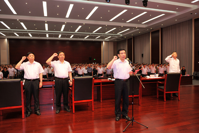 为了激励广大共产党员坚定理想信念,牢记党的宗旨,大会举行了宣誓仪式。苗圩同志领誓,新党员宣誓,老党员重温入党誓词。