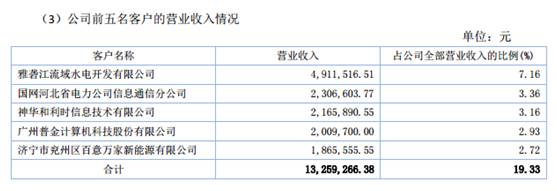 兴竹信息2016年前五大客户营收占比