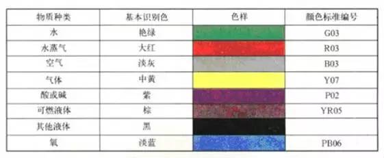 表:工业管道与识别色