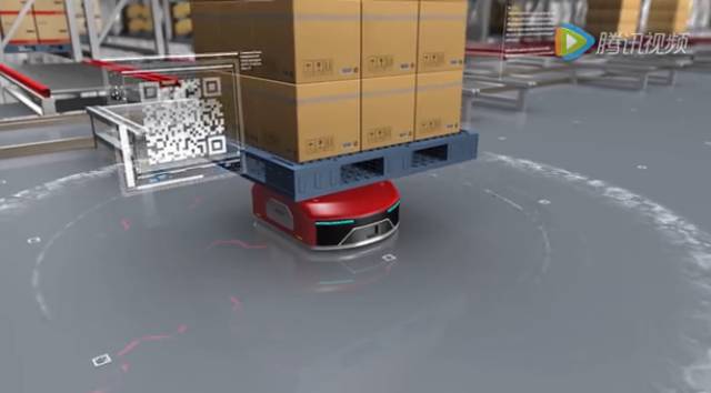 无人仓中有大量貌似“扫地机”的机器人托着料箱有条不紊地忙碌着,这种AGV(自动导引小车)可通过地上的二维码定位进行导航,并结合系统的调度,实现了整个仓库的合理安排生产。相较于传统的输送线的搬运方案,通过AGV实现“货到机器人”的方式具有更高的灵活性。