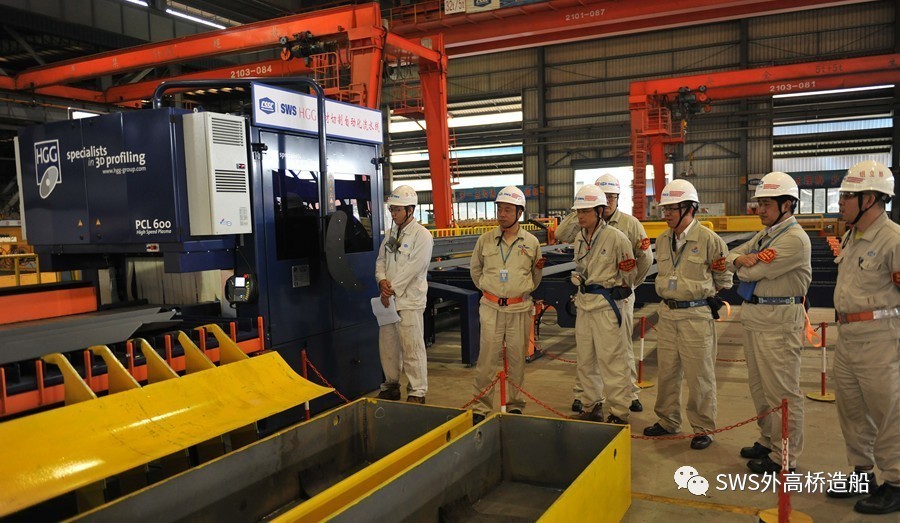 据悉,该流水线投产后,产品可以覆盖角钢、球扁钢、扁钢等多种型材,具备自动上下料、自动划线印字、自动切割、自动分拣等多种功能。整线人员配备仅为2人,每日设计加工能力达到100根,是目前加工部自动化程度最高的生产线。为确保新设备按期顺利投产,加工部、建工部和生产保障等部门领导非常重视,分别成立工作组,前期做了大量筹备工作。在建工部的精心组织下,项目如期开工,并按计划组织了对加工部设备操作人员、生保部维修人员和设计部编程人员进行了设备维护管理、机器操作和简单编程的系统培训。在流水线投产前,加工部进行了多次生产流程再造和场地布局优化的细致策划,对流水线辅助工装、计划体系、人员准备等提前落实,为项目尽快投入生产打下了坚实的基础。