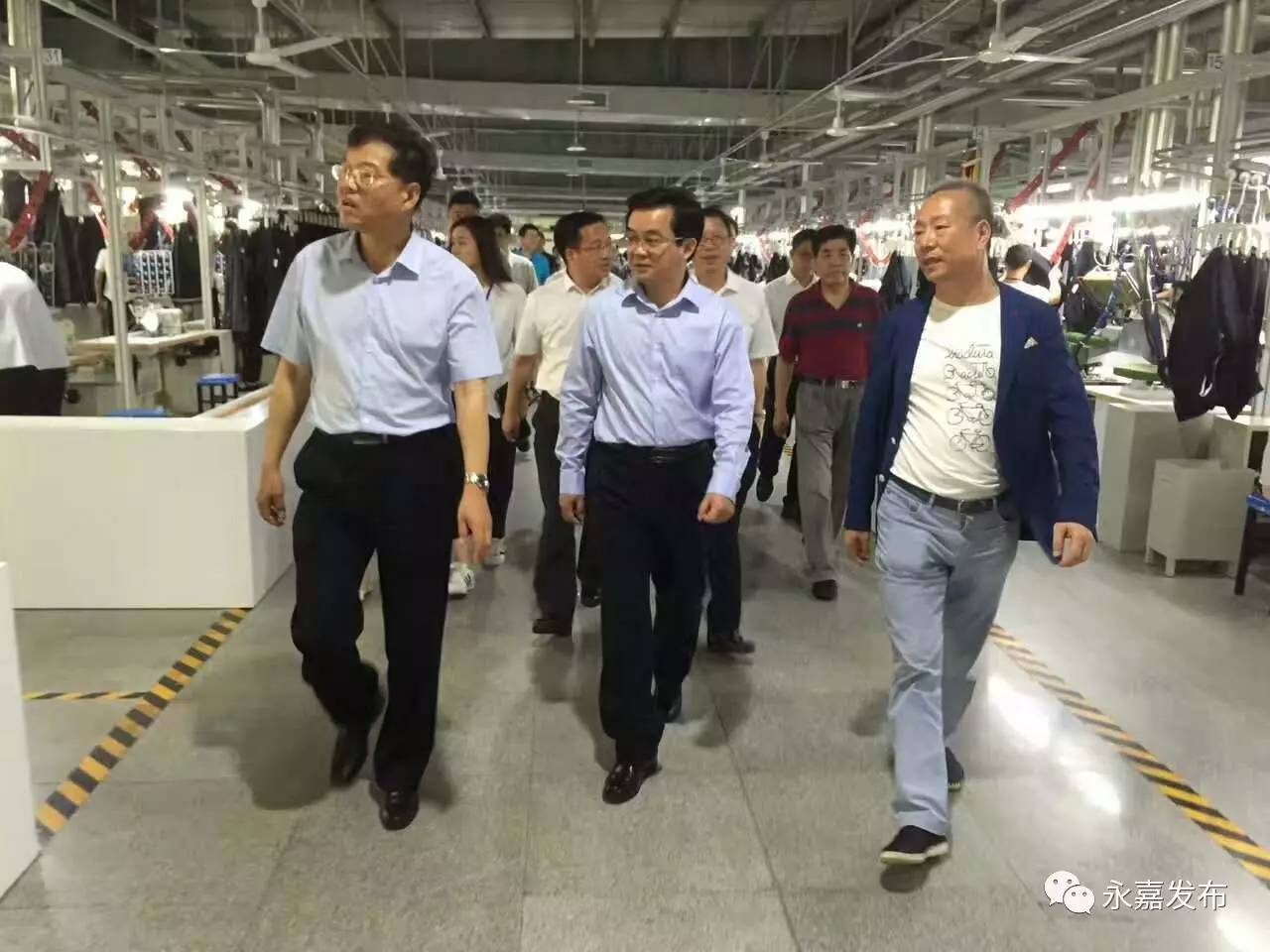 在报喜鸟云翼智能工厂,高兴夫一行深入企业生产车间,实地察看先进装备、生产线运行和产品产销情况。在MTM智能生产车间,高兴夫零距离接触了智能制造的流程工序,对报喜鸟投资亿元改造智能流水线、利用大数据与互联网优势使过去繁杂的定制业务不再复杂的做法表示赞赏。他说,如今私人化定制是一种趋势,消费者对个性化购买的需求越来越高,他鼓励企业要持之以恒加大创新创业,把创新理念贯穿在整个生产经营过程中,改进工艺流程,提升产品竞争力。