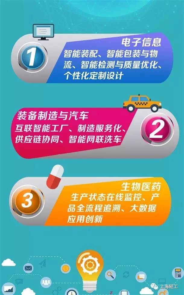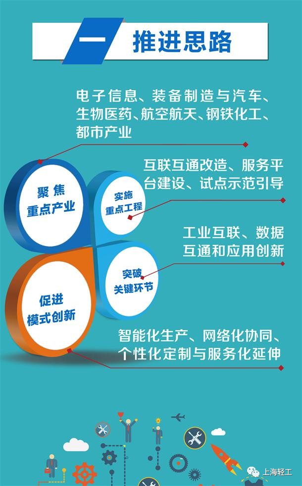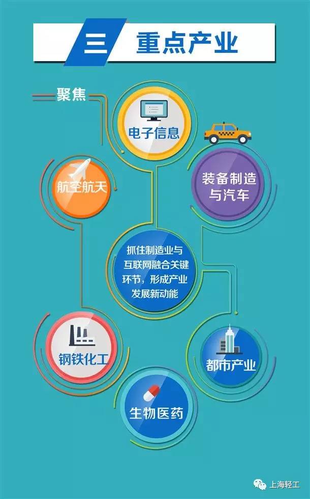 围绕《上海市制造业转型升级“十三五”规划》和《上海市推进智慧城市建设“十三五”规划》,聚焦本市战略性新兴产业、传统优势制造业、生产性服务业等两化融合基础较好、带动效应较大的六类重点产业,抓住制造业与互联网融合关键环节,形成产业发展新动能。