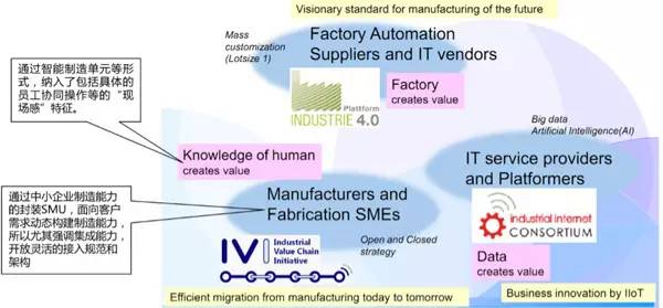 日本工业价值链战略级化IVI在2015年启动以后,2016年推出了备受行业关注的智能制造单元SMU,以及旨在连接不同企业的“松标准”,并在2016年12月推出了智能制造框架白皮书IVRA,成为一个里程碑的建树——它指向企业如何进行连通,给出了开放灵活的接入规范和架构,通过智能制造单元和工业价值链来持续产生价值。