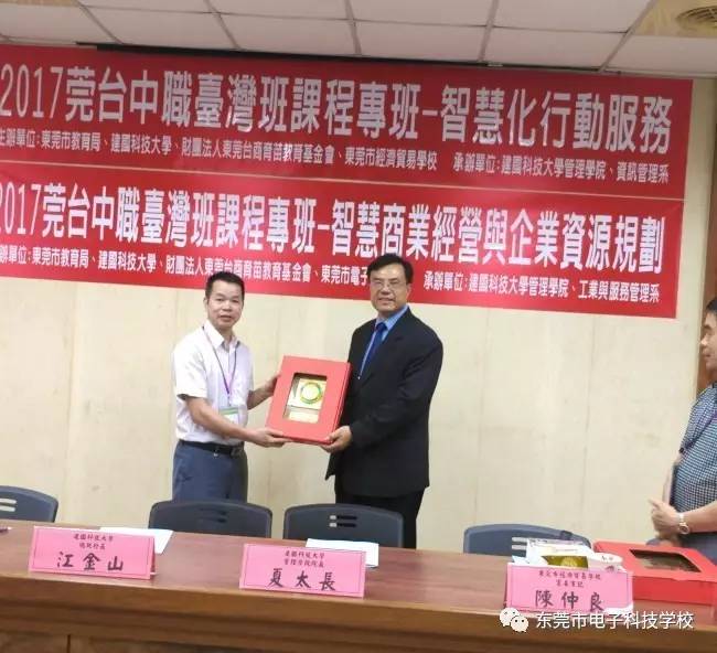 6月30日傍晚,2015级台湾ERP班到达建国科技大学并即时开展了此次台湾班的开班会议。各单位负责都重点向同学们强调此行的目的,提醒同学们一定要遵守纪律,注意安全。会议结束,我校杨潮喜副校长代表学校与建国科技大学互赠纪念礼物。