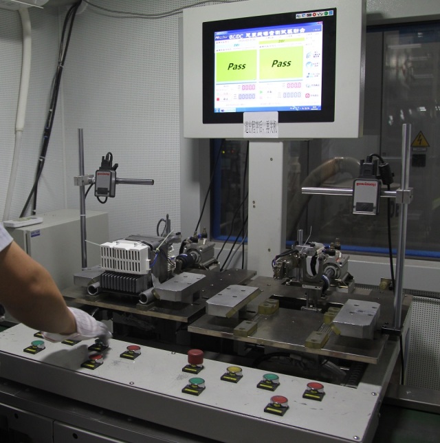?此时,完成组合的电机仍然只是“半成品”,距离完全“合璧”还欠缺几项性能检测的距离。只有参与绝缘耐压振动、噪音等性能检测且获得满分的电机产品才是“合璧”成功的Welling电机。而这些检测都在自动化生产线上统一完成,不需要来回搬运电机,不需要增加额外操作工位,正如在噪音房中,Welling电机将模拟正常运作状态,自动化设备会对其进行数据检测分析,完成检测的电机直接进入最后一步的外观检测与包装。如遇不通过检测的电机,均一律进行返检重塑,保证了Welling电机的高品质。