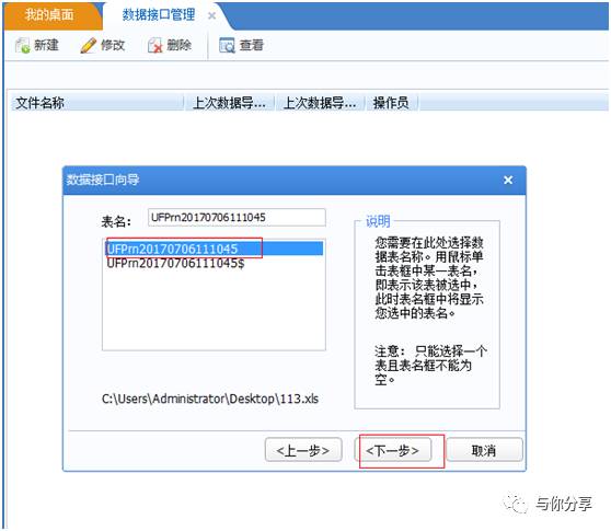 选择表名------下一步