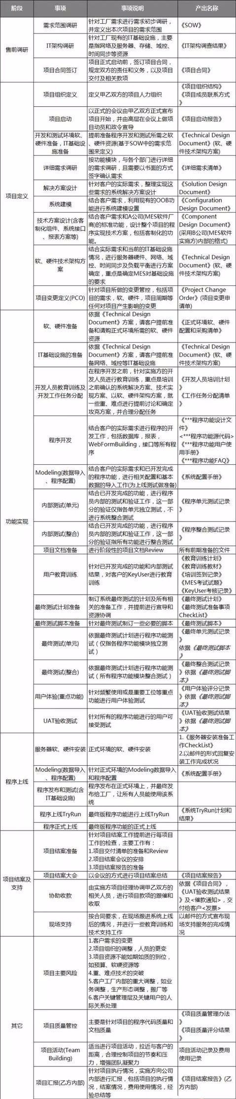 国内的软件公司导入MES项目的阶段大致分为如下的五个阶段: