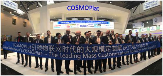 4月24日,2017年汉诺威工业博览会召开,作为中国制造2025示范样板,海尔现场展出了一条互联工厂示范线,并向全球发布了COSMOPlat工业互联网平台,得到了德国政府工业4.0战略指导委员会、德国工业4.0平台等权威机构及企业代表的高度评价。