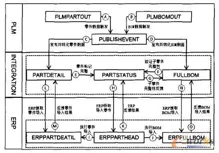 PLM与ERP集成可分为三层架构,包括PLM处理层、集成处理层、ERP处理层,如图4所示。