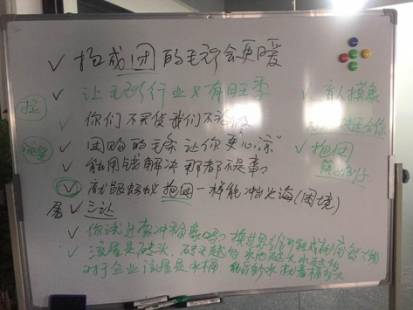 记得有一次围绕着:“在面对潜在客户时,如何形象生动的介绍公司”这个议题讨论,他们竟然想到了用盲人摸象的故事。原来这样也可以,小编只想说你们这些人很有想法。