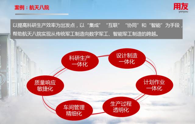智能研发是智慧管理的重要组成部分。用友提供基于PLM的智能研发解决方案:通过与CAX的集成形成智能研发工具的整合;以项目管理为主线实现协同研发平台;以产品数据管理为核心实现企业产品研发的数据协同;通过对研发数据的分类、汇总、归纳、演绎形成研发知识管理,并辅助研发的智能分析与决策;通过与ERP的深度整合,实现面向产品全生命周期的设计制造一体化业务和数据的穿透。此方案服务了赛象科技、大运汽车、泰尔重工、中航津电等数百家客户。