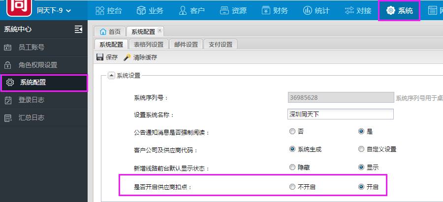 【系统--系统配置--开启供应商扣点功能(PS:不需要可关闭)】