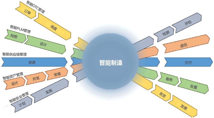 智能制造将所有上述功能集成在一起,提供了一个灵活的、自适应的生产制造环境,包括所有业务活动相关的生产、质量、物理库存管理和维护等。