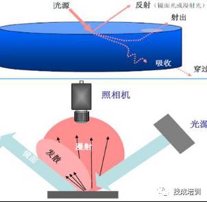 发散反射:多数表面既有纹理,又有平滑表面,会对光线进行发散反射