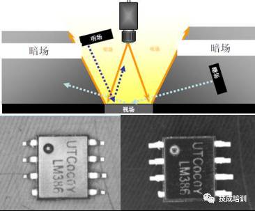 使用不同照明技术对被测目标会产生不同的影响,以滚珠轴承为例:
