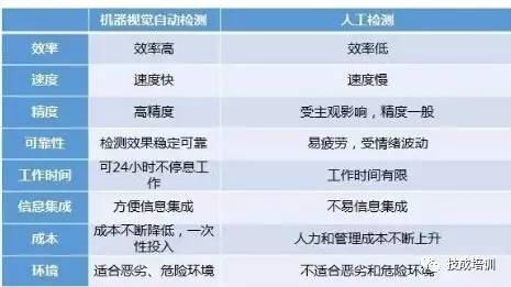 机器视觉优势:机器视觉系统具有高效率、高度自动化的特点,可以实现很高的分辨率精度与速度。机器视觉系统与被检测对象无接触,安全可靠。人工检测与机器视觉自动检测的主要区别有: