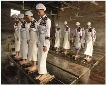 1什么是酱香型白酒的制曲?所谓端午踩曲,就是每年端午时节开始制作酒曲。端午踩曲是茅台镇正宗酱香型白酒一个生产周期的开始,一般是端午时节开始制作酒曲。酒曲是粮食发酵成酒醅的必备原料。茅台镇酱香型白酒都是采用当地优质的冬小麦制曲,在高温(一般40摄氏度以上)下制曲。每年端午后,酒师们开始制造曲药。曲药以小麦为原料,先将小麦粉碎,加入水和“母曲”搅拌,放在木盒子里,工人站在盒子里用脚不停地踩。很多酱酒品牌都是遵循这种古老的踩曲工艺。像茅台、郎酒、习酒、国台、潭酒、金沙等品牌都是遵循端午踩曲,人工踩曲的古老制曲方式。小麦经过“踩曲”做成“曲块”,用谷草包起来,进行“装仓”。大约7天后再进行“翻仓”,就是把曲块进行上下翻转,让每一面都能充分接触微生物。前后一般要进行两次翻仓。40天左右,曲块就做好可以出仓了,但是要使用的话还需要存储3个月以上。在使用之前,要将曲块“磨碎”,越碎越好。