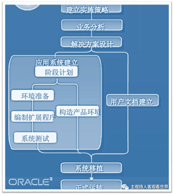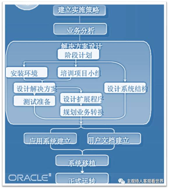 Oracle将ERP系统的实施过程分为以下六个阶段: