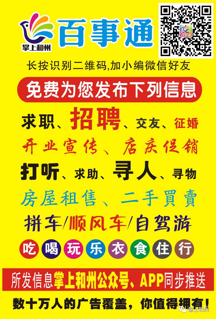 想要看到或者自己发布更多最新的便民信息,请点击咱们菜单栏中的便民信息栏,或者下载掌上和州APP,你就可以自己轻松发布或查阅更多的最新便民信息啦!
