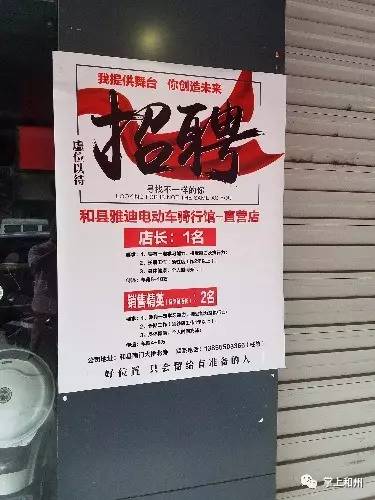 雅迪电动车(和县旗舰店)高薪招聘