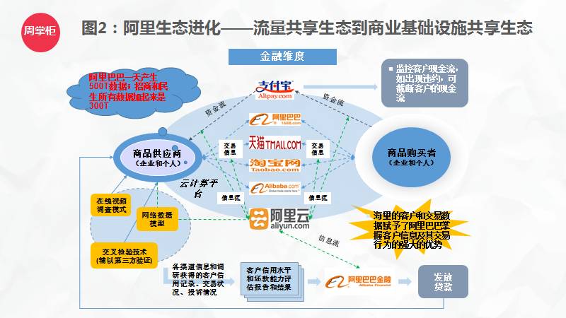 如图1:阿里上市的招股说明书里公布的早期战略是基于流量共享生态的,很多人称之为流量批发。基于这样一个半广告接地气的商业模式,阿里开始将流量壁垒转化为金融壁垒。