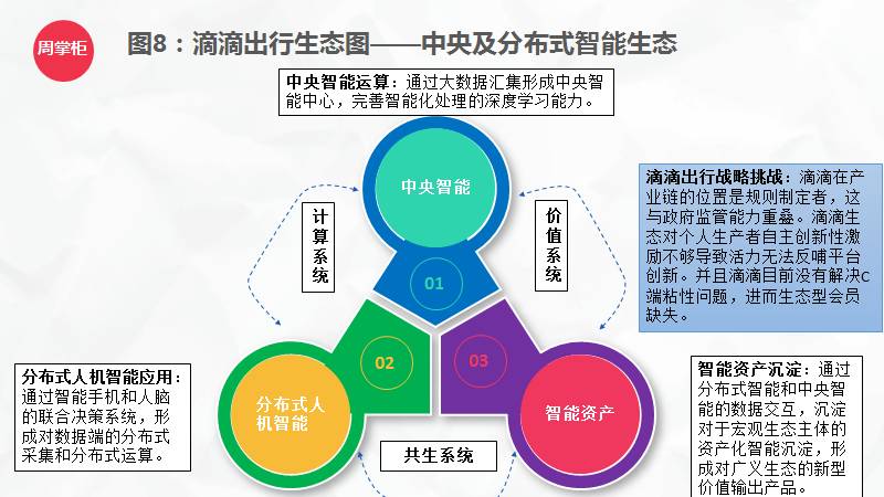 如图8,滴滴出行战略挑战是,滴滴在产业链的位置是规则制定者,这与政府监管能力重叠。滴滴生态对个人生产者自主创新性激励不够导致活力无法反哺平台创新,或者说滴滴平台一直与司机这样的生态伙伴保持着零和博弈的利润分配关系。并且滴滴目前没有解决C端粘性问题,进而生态型会员缺失。