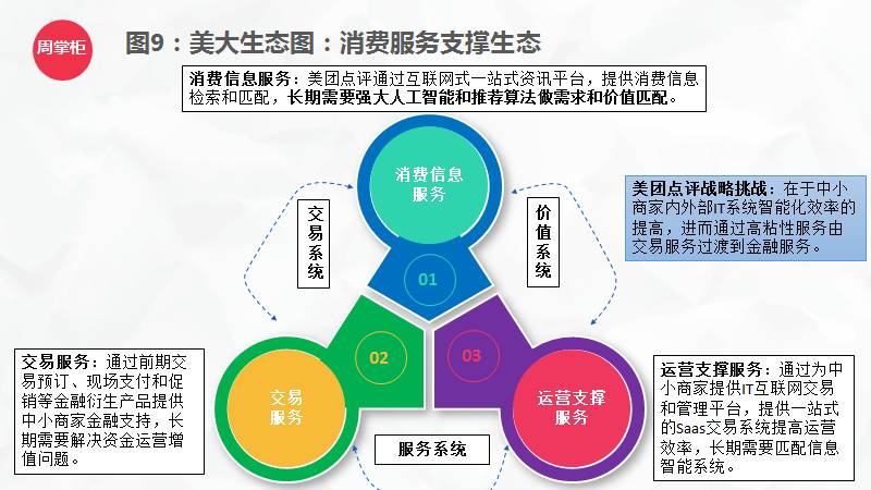 如图9,而美大战略挑战是:如何让中小商家内外部IT系统智能化效率的提高,进而通过高粘性服务由交易服务过渡到金融服务形成新的战略支点。