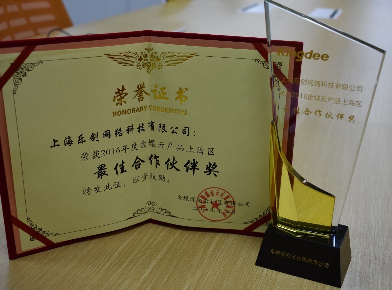 金蝶蝶金2016年上海区云产品最佳合作伙伴