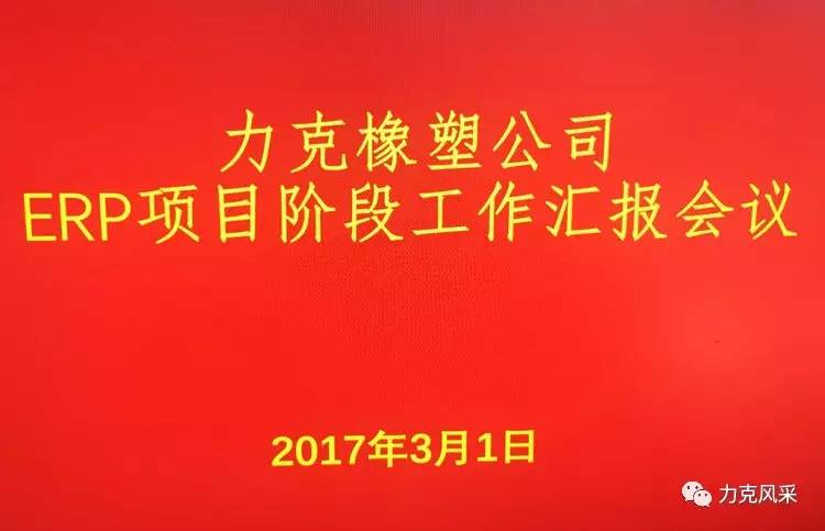 3月1日上午,力克橡塑公司召开ERP项目阶段工作汇报会议,此次会议由ERP项目领导小组及项目关键用户参加。会上整理了项目开展至今的工作内容并对各部门的工作任务完成情况进行汇报。