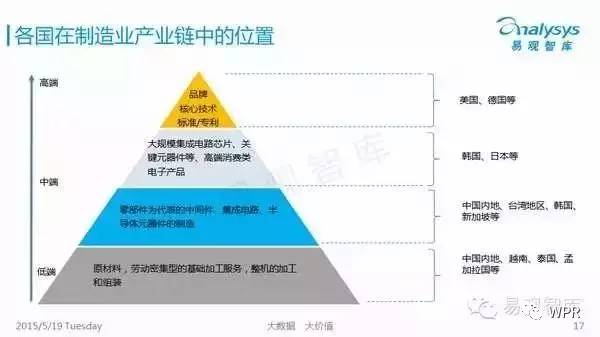 我们可以看到,各个国家都在部署如何转型。但是,现在制造业中,各个国家所处的地位还是不同。我在网上找到一张图,可以客观说明其中差异: