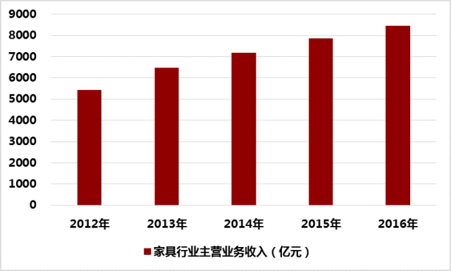 2012-2016年家具行业主营业务收入