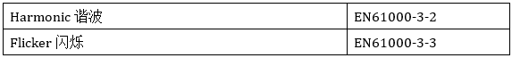 EN61000-3-2、EN61000-3-3、EN61000-6-4、EN61000-4-2、EN61000-4-3、EN61000-4-4、EN61000-4-5、EN61000-4-6、EN61000-4-8、EN61000-4-11。