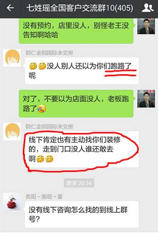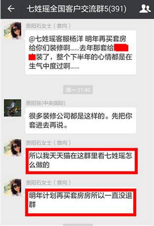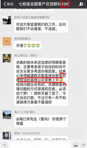 正如下面这位客户,即使2016年被其它一个大公司忽悠了,上套了,但仍不愿意退出“七姓瑶客户群”,“猫在群里”,明年买房一定交给七姓瑶,就是对这种透明装修模式的挚爱。