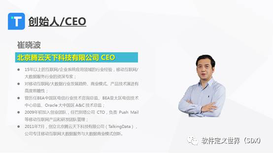 成立五年来,TalkingData发展可谓天时地利人和。所谓天时,正好赶上移动互联网兴起这股东风;所谓地利,中国作为互联网的新兴市场,不仅有大量的人口红利,移动应用的井喷式增长也为大数据发展奠定了基础;所谓人和,创始团队均来自Oracle、IBM等著名IT服务公司,拥有丰富的IT管理和服务经验,也因此吸引了大量传统IT和新兴互联网公司的优秀人才。