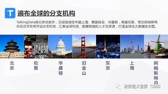 优秀的团队并不仅仅满足于在国内发展,随着TalkingData不断壮大,稳健的步伐已经迈出国门,除北京总部外,TalkingData已经陆续在中国上海、美国硅谷、华盛顿,英国伦敦、荷兰阿姆斯特丹及日本东京开设分支机构,汇聚全球科技、数据领域的人才及资源,打造全球化大数据生态圈。