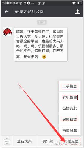 2.点开爱我大兴社区网微信右下角“同城互助”,即可发布相关信息,见下图